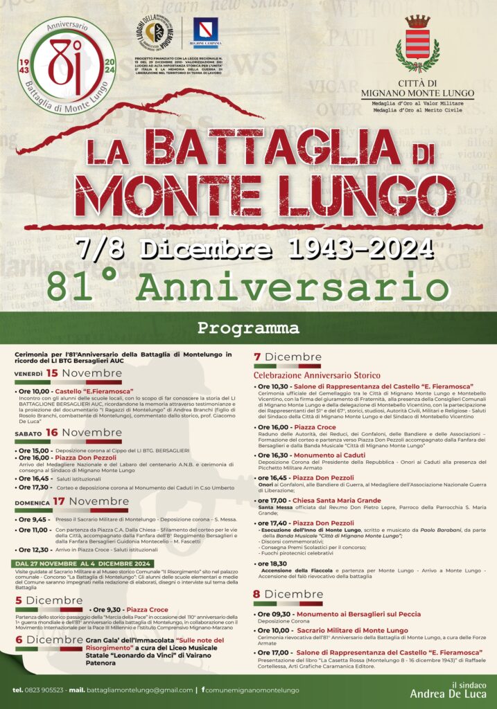 Situato lungo la “Linea Gustav”, Mignano Monte Lungo fu teatro di violenti scontri, in particolare della Battaglia di Monte Lungo (8 dicembre 1943). Qui, i soldati del Primo Raggruppamento Motorizzato italiano (nucleo del futuro Esercito Italiano), affiancati dagli Alleati, affrontarono le forze tedesche in un sanguinoso conflitto. La vittoria fu cruciale per l’avanzata alleata verso Roma e rappresentò un momento fondamentale per la riscossa dell’Italia.